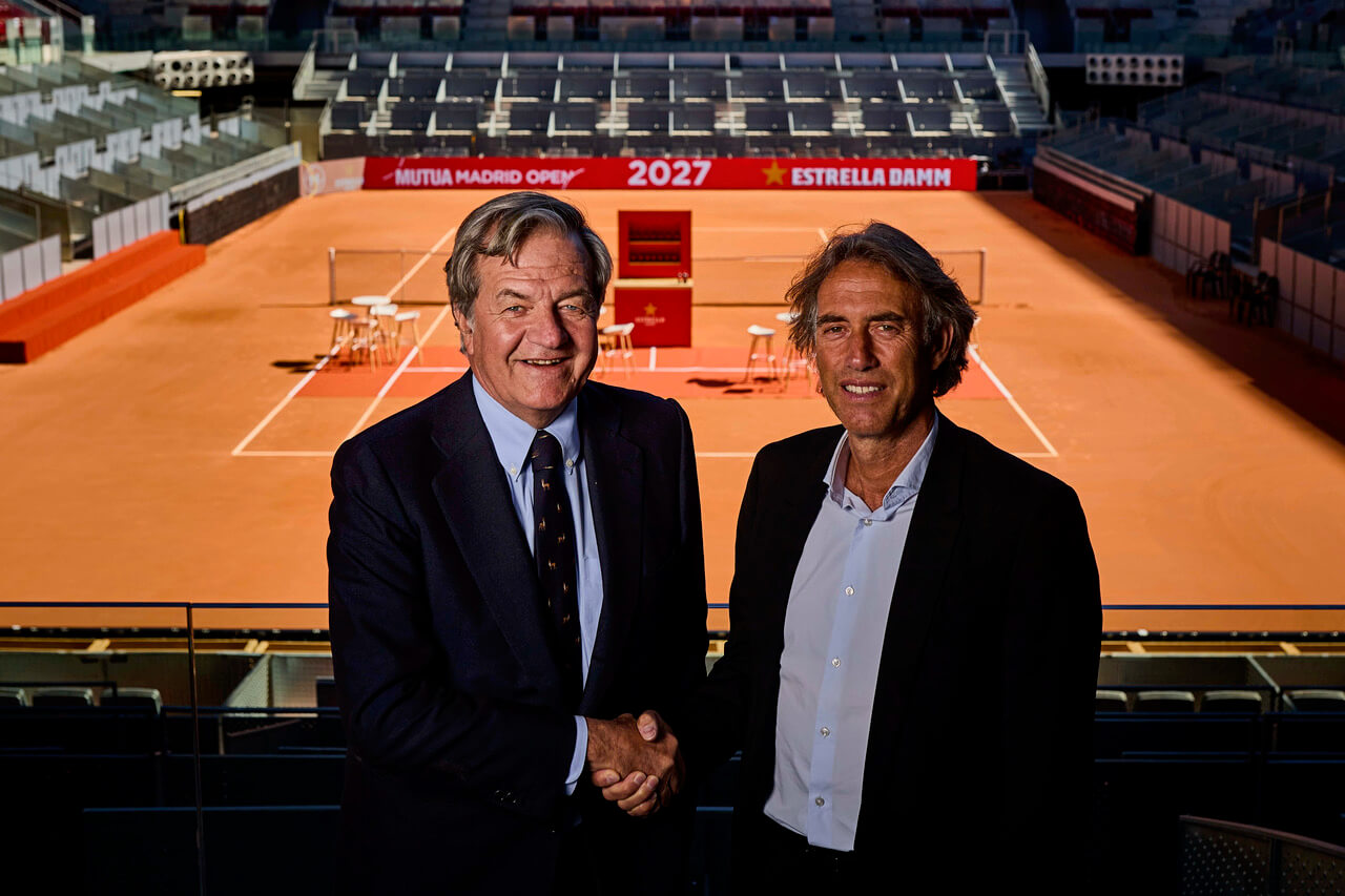 Estrella Damm y el Mutua Madrid Open han anunciado la renovación del acuerdo de patrocinio de la marca con el torneo para las próximas cinco ediciones, dando continuidad a la relación que los une desde 2008. El acuerdo ha sido ratificado en la Caja Mágica por Jorge Villavecchia, director general de Damm, y Gerard Tsobanian, CEO del Mutua Madrid Open, en un acto al que también han asistido Jofre Riera, director de Patrocinios de Damm, y Javier Burgos, director comercial del Mutua Madrid Open.